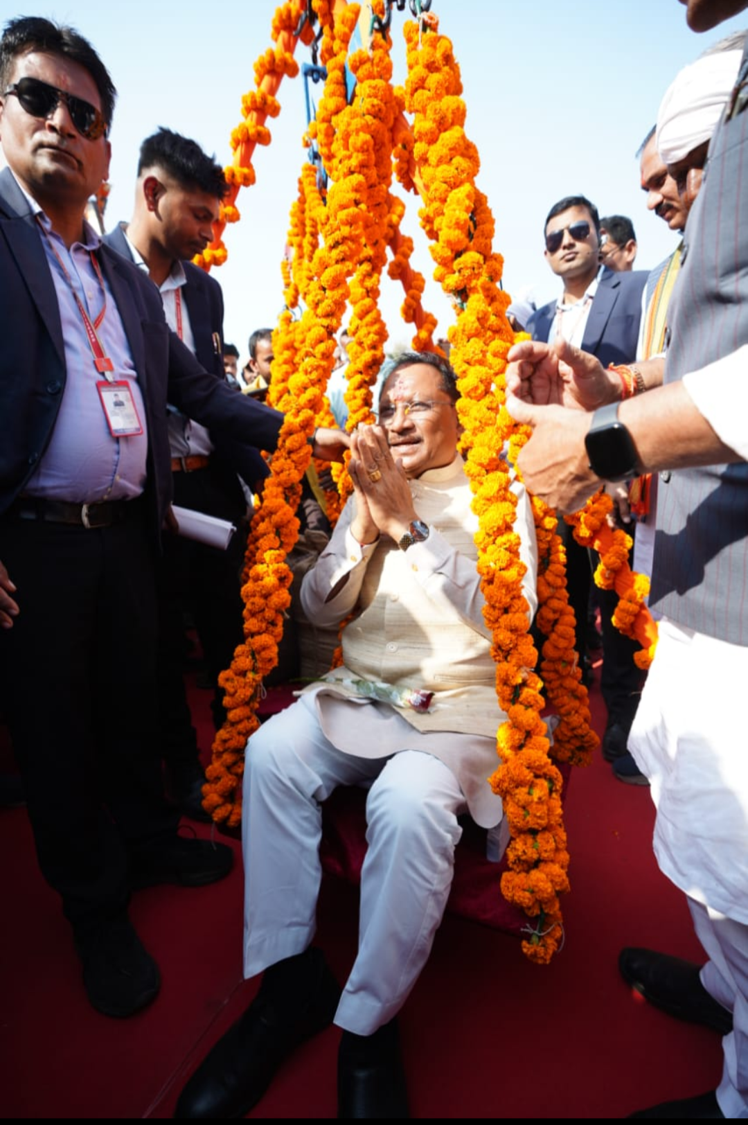 बलौदाबाजार, 4 दिसम्बर 2025 / मुख्यमंत्री श्री विष्णु देव साय आज सुहेला में लोकार्पण एवं भूमिपूजन कार्यक्रम में शामिल हुए। इस अवसर पर विभागीय स्टॉल अवलोकन के दौरान सहकारिता विभाग द्वारा मुख्यमंत्री का धान से वजन कर अन्नदाताओ के उपज का सम्मान किया गया। मुख्यमंत्री ने उपस्थित किसानों से पसमर्थन मूल्य पर धान धान विक्रय के सम्बन्ध में बात की। किसानों धान खरीदी व्यवस्था की प्रशंसा करते हुए मुख्यमंत्री को अभिनन्दन पत्र भेंट किया। इस दौरान उप मुख्यमंत्री श्री अरुण साव, राजस्व मंत्री श्री टंकराम वर्मा, स्वास्थ्य मंत्री श्री श्याम बिहारी जायसवाल उपस्थित थे।