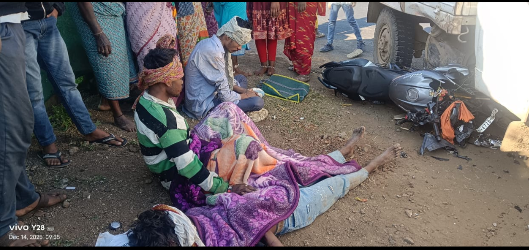 पिकअप में घुसी मोटरसाइकिल तीन लोग गंभीर घायल।