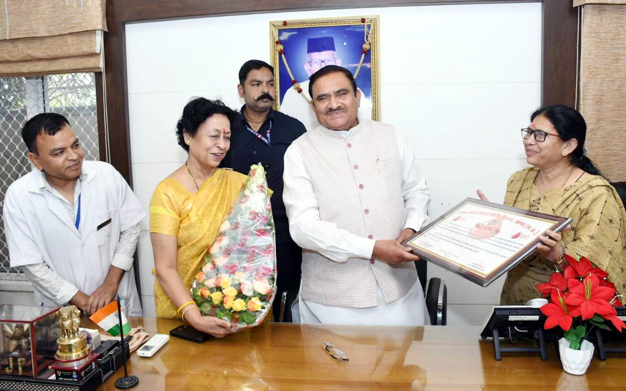 : विश्व रक्तदाता दिवस पर स्वास्थ्य विभाग ने पूर्व मंत्री भूपेंद्र सिंह को आभार पत्र सौंपा