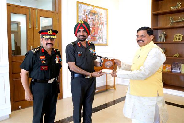 मुख्यमंत्री डॉ. मोहन यादव से भोपाल स्थित सेना के स्ट्राइक कोर के जनरल आफिसर कमांडिंग प्रीतपाल सिंह तथा ब्रिगेडियर एस.एस. छिल्लर ने समत्व भवन में सौजन्य भेंट की।
