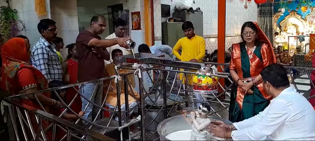 : सदर ठाकुर देवालय मंदिर में सभी भक्तजनों श्री कृष्ण जी का दूध से अभिषेक किया।