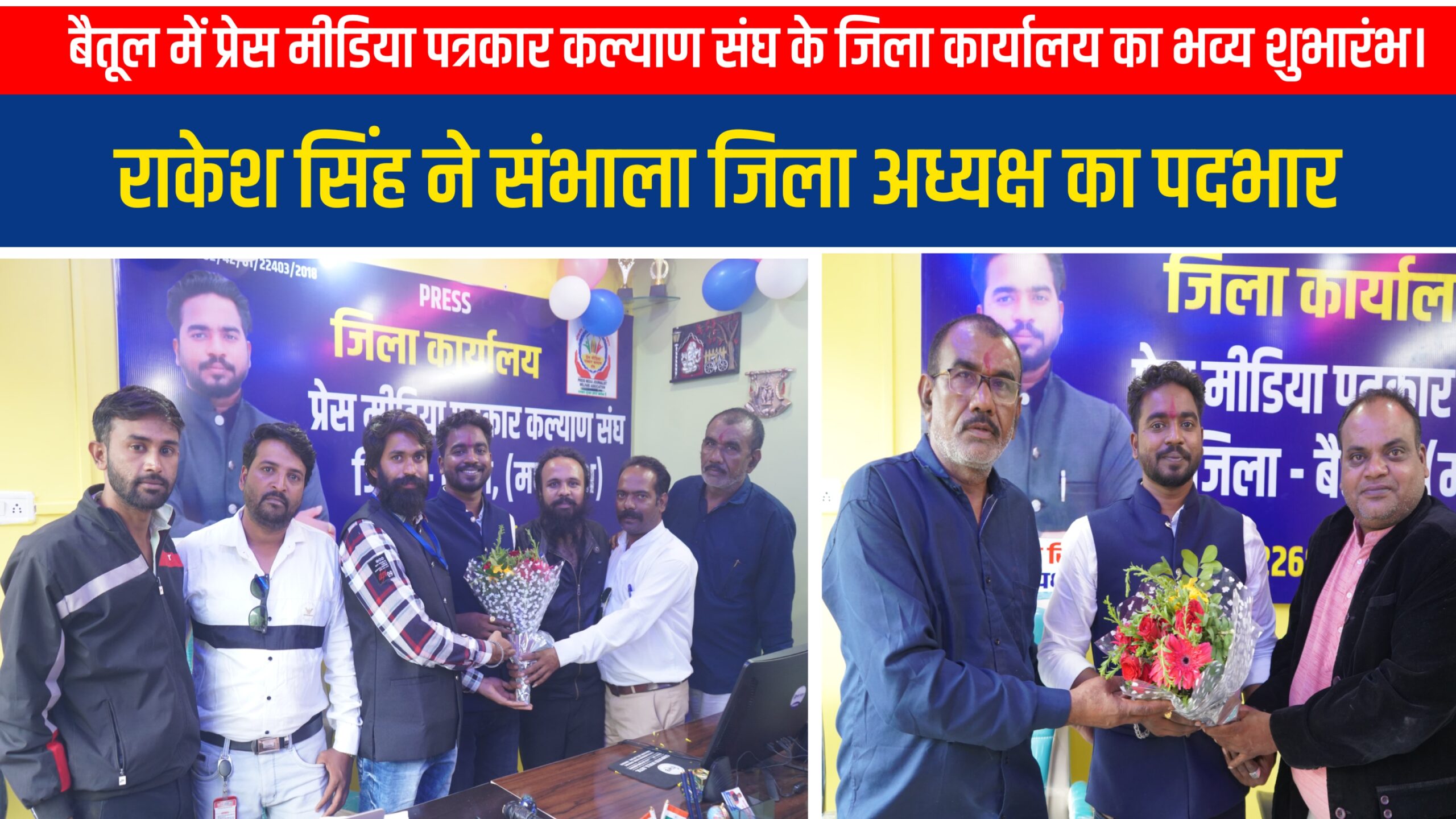 : बैतूल में प्रेस मीडिया पत्रकार कल्याण संघ के जिला कार्यालय का भव्य शुभारंभ। राकेश सिंह ने संभाला जिला अध्यक्ष का पदभार