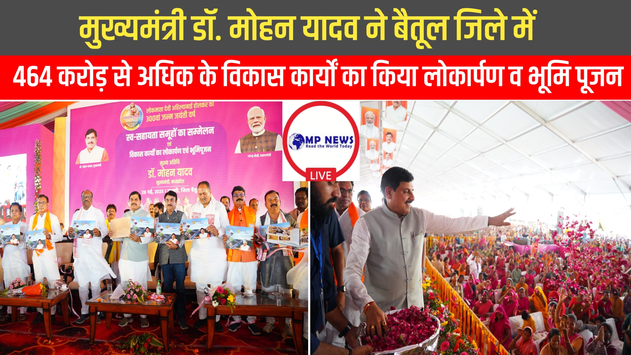 : मुख्यमंत्री डॉ. मोहन यादव ने बैतूल जिले में 464 करोड़ से अधिक के विकास कार्यों का किया लोकार्पण व भूमि पूजन