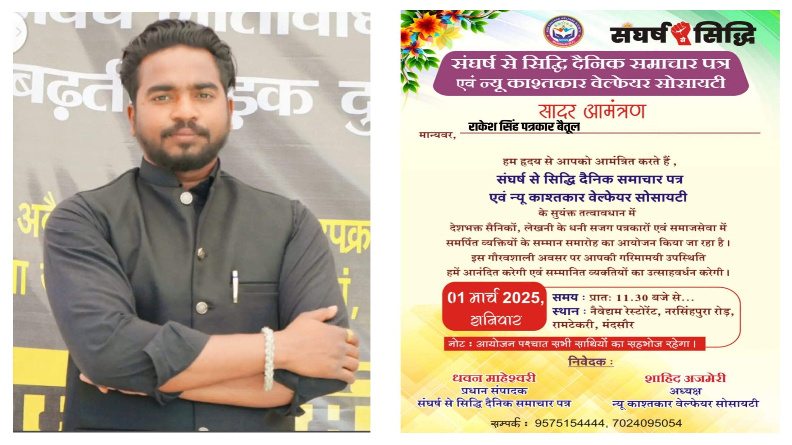 : संघर्ष से सिद्धि" सम्मान समारोह में बैतूल के पत्रकार राकेश सिंह होंगे सम्मानित