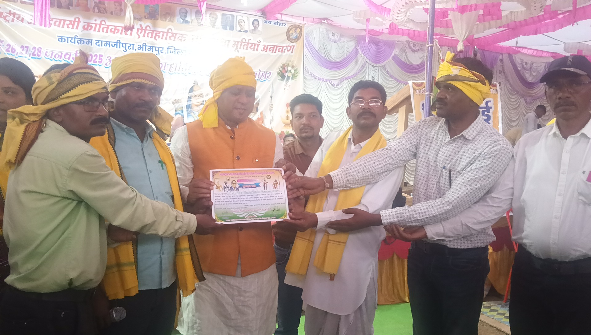 दामजीपुरा में 26 से 28 जनवरी तक आयोजित तीन दिवसीय आदिवासी संस्कृति महोत्सव ने इतिहास रच दिया। इस महोत्सव को आदिवासी नायकों टंट्या मामा, रेंगा कोरकू और डॉ. भीमराव अंबेडकर,बिरसा मुंडा ,रानी दुर्गावती को समर्पित किया गया। कार्यक्रम का आगाज 26 जनवरी को गोंगो पूजा ग्राम दामजीपूरा में कलश यात्रा और मूर्तियों का अनावरन कर रात्रिकालीन सांस्कृतिक कार्यक्रम से हुआ, जिसमें आदिवासी संस्कृति के रंगों में रंगे हुए क्षेत्रवासियों ने पारंपरिक गीतों और नृत्य के साथ उत्सव की शुरुआत की।27 जनवरी को इस ऐतिहासिक कार्यक्रम में विशेष क्षण आया जब आदिवासी क्रांतिकारियों की मूर्तियों की स्थापना की गई। इस मौके पर क्षेत्रीय बीजेपी विधायक महेंद्र सिंह चौहान ने एक बड़ी घोषणा की। उन्होंने मूर्तियों के छत के निर्माण के लिए एक लाख से लेकर आठ लाख रुपये तक की आर्थिक सहायता देने की घोषणा की, जिससे इस सांस्कृतिक धरोहर को और भी सम्मान मिलेगा।मंडल अध्यक्ष उषा नीलकमल डिकारे और क्षेत्रीय कार्यकताओं की उपस्थिति ने इस आयोजन को और भी ऐतिहासिक बना दिया। यह महोत्सव न केवल आदिवासी संस्कृति का सम्मान था, बल्कि पूरे क्षेत्र को एक नई उम्मीद और प्रेरणा देने वाला भी साबित हुआ। अब दामजीपुरा के लोग गर्व से अपनी सांस्कृतिक धरोहर को आगे बढ़ाने के लिए प्रेरित हैं।