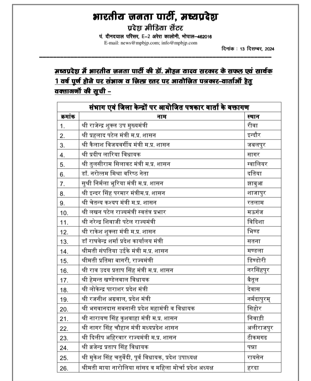 : भारतीय जनता पार्टी की मध्यप्रदेश की डाॅ Dr Mohan Yadav की सफलतम 1 वर्ष पूर्ण होने पर नरयावली विधायक प्रदीप लारिया को सागर जिले में पत्रकार वार्ता हेतु प्रदेश भारतीय जनता पार्टी की ओर से अधिकृत किया गया माननीय विधायक जी को भी सफलता पूर्वक 1 बर्ष पूर्ण होने पर हार्दिक शुभकामनाएं बधाई