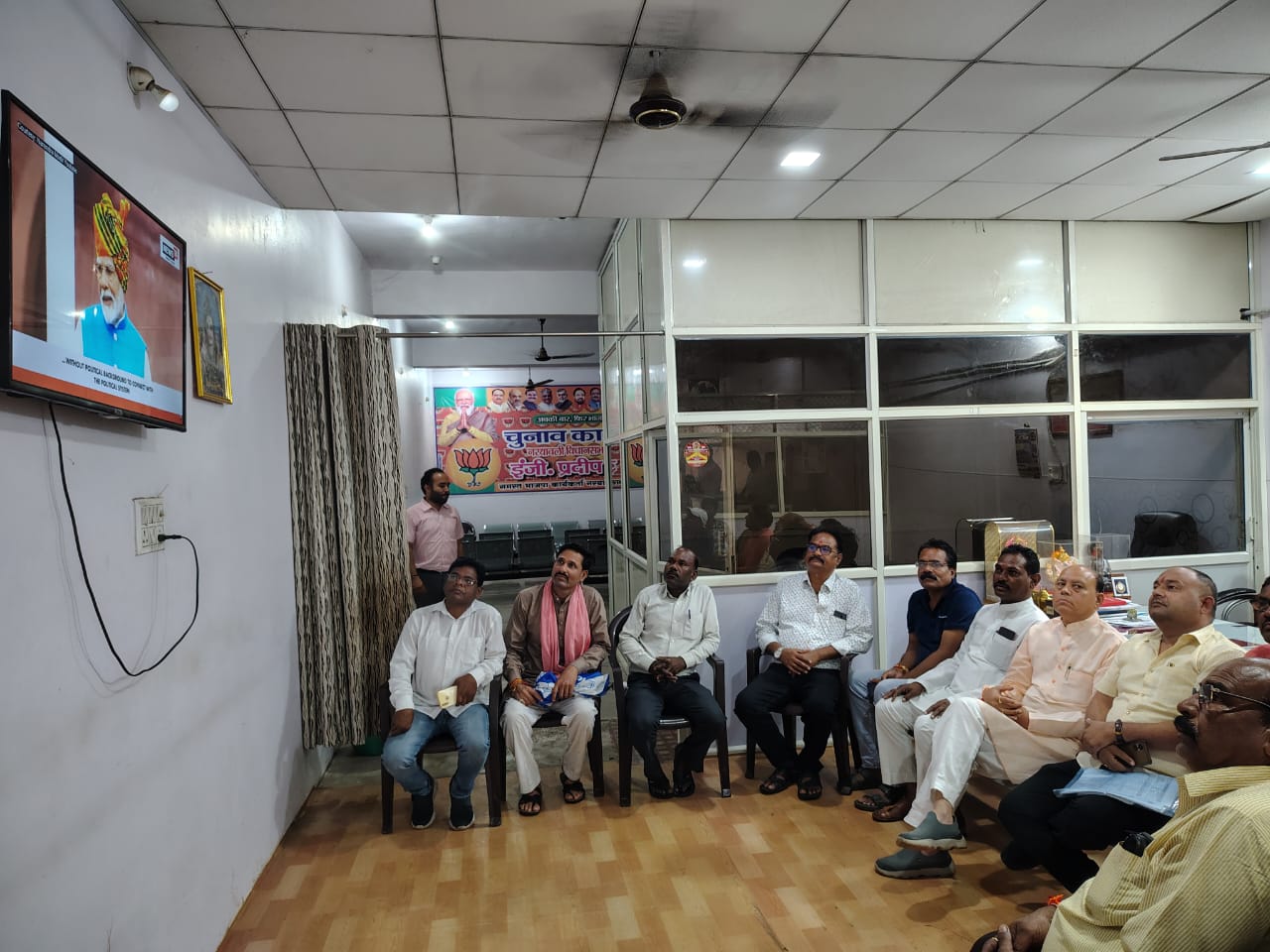 : नरयावली विधायक प्रदीप लारिया के साथ भाजपा पदाधिकारीयों ने देश के प्रधानमंत्री नरेंद्र मोदी के मन की बात को सुना।