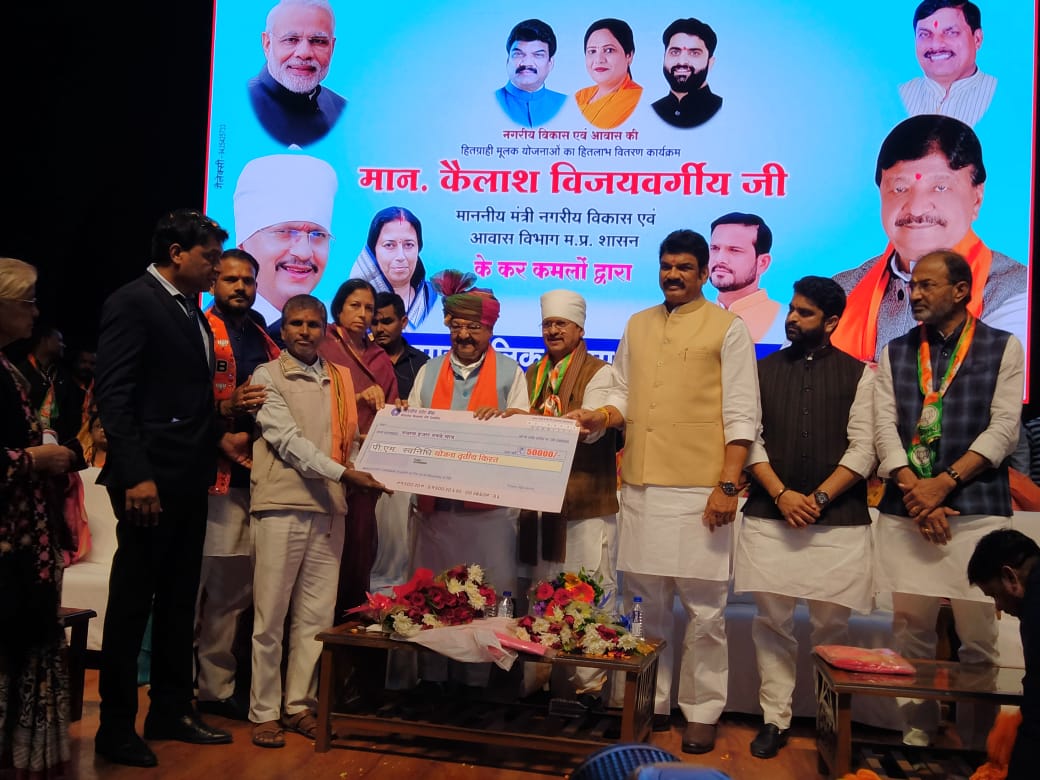 : म.प्र.शासन के नगरीय विकास एवं आवास विभाग मंत्री मान.श्री विजयवर्गीय जी की अध्यक्षता में नगर निगम द्वारा संचालित शासन की विभिन्न जनकल्याणकारी योजनाओं का हितलाभ वितरण